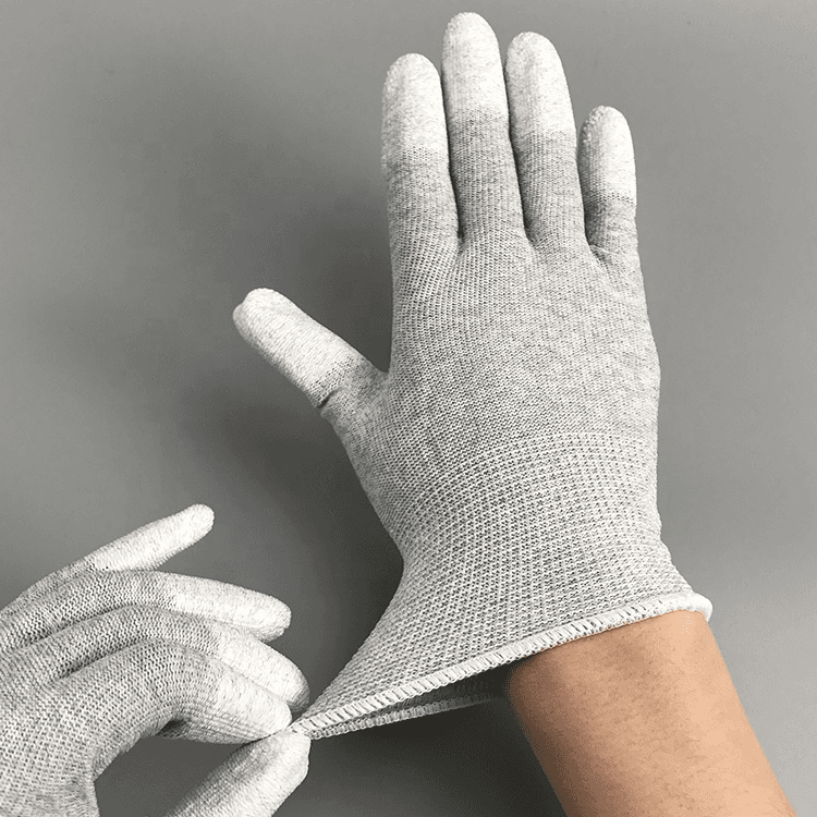 Sarung tangan berlapis jari anti-statis serat karbon banyak digunakan dalam perakitan dan pemeliharaan komputer, ponsel, dan produk elektronik. Dengan secara efektif mencegah pembentukan listrik statis, sarung tangan dapat mencegah listrik statis dari komponen sensitif yang merusak dan ringkasan pendek seperti RAM dan sirkuit IC, dan memastikan keamanan unit dan pemeliharaan produk elektronik.