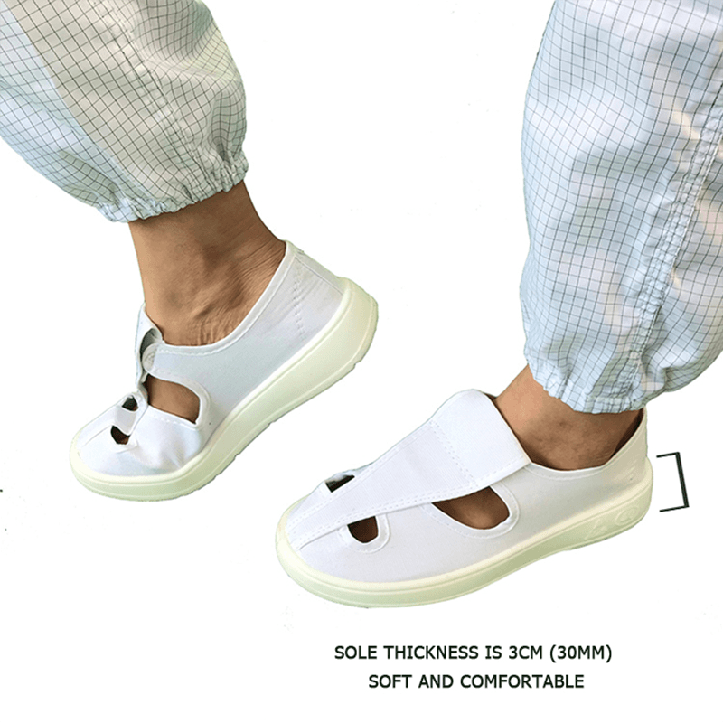 Sepatu anti-statis adalah peralatan pelindung utama untuk lokakarya produksi dan laboratorium canggih di industri mikroelektronika seperti peralatan komunikasi dan sirkuit terintegrasi. Mereka dirancang untuk mengurangi atau menghilangkan bahaya listrik statis dengan dengan aman menyalurkan listrik statis yang dihasilkan oleh tubuh manusia ke tanah melalui bahan konduktif di sol. Ini secara efektif dapat mencegah listrik statis dari merusak peralatan dan produk elektronik yang sensitif, dan melindungi stabilitas lingkungan produksi dan kualitas produk.